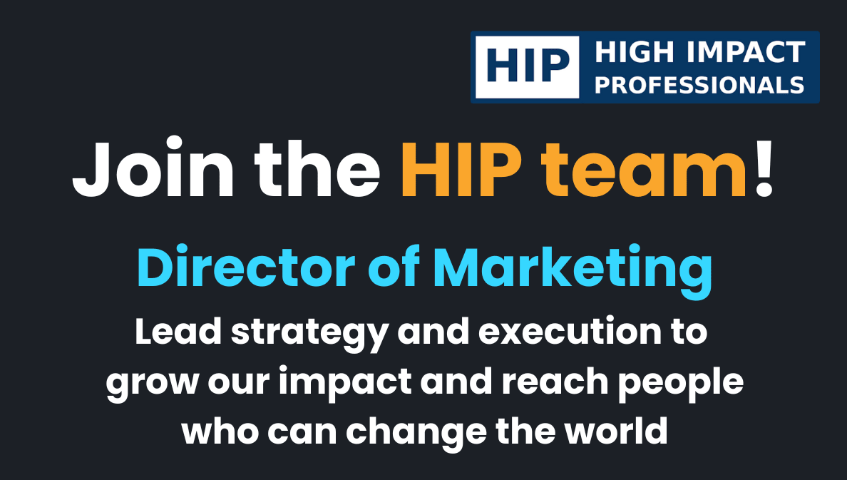 High Impact Professionals (HIP) is an international nonprofit that helps experienced professionals use their careers to create as much positive impact as possible. Through our flagship programs - the Impact Accelerator Program and the Talent Directory - we’ve already supported over 60 professionals to transition into high-impact roles and facilitated millions of dollars in counterfactual impact through our community (see our 2024 impact report). Now, we’re excited to hire a Director of Marketing to help lead HIP’s impact growth - expanding our reach, deepening our brand, and connecting our mission with thousands more professionals worldwide.