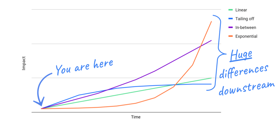 From today, your overall impact can follow a number of different trajectories. Here are a few possibilities: