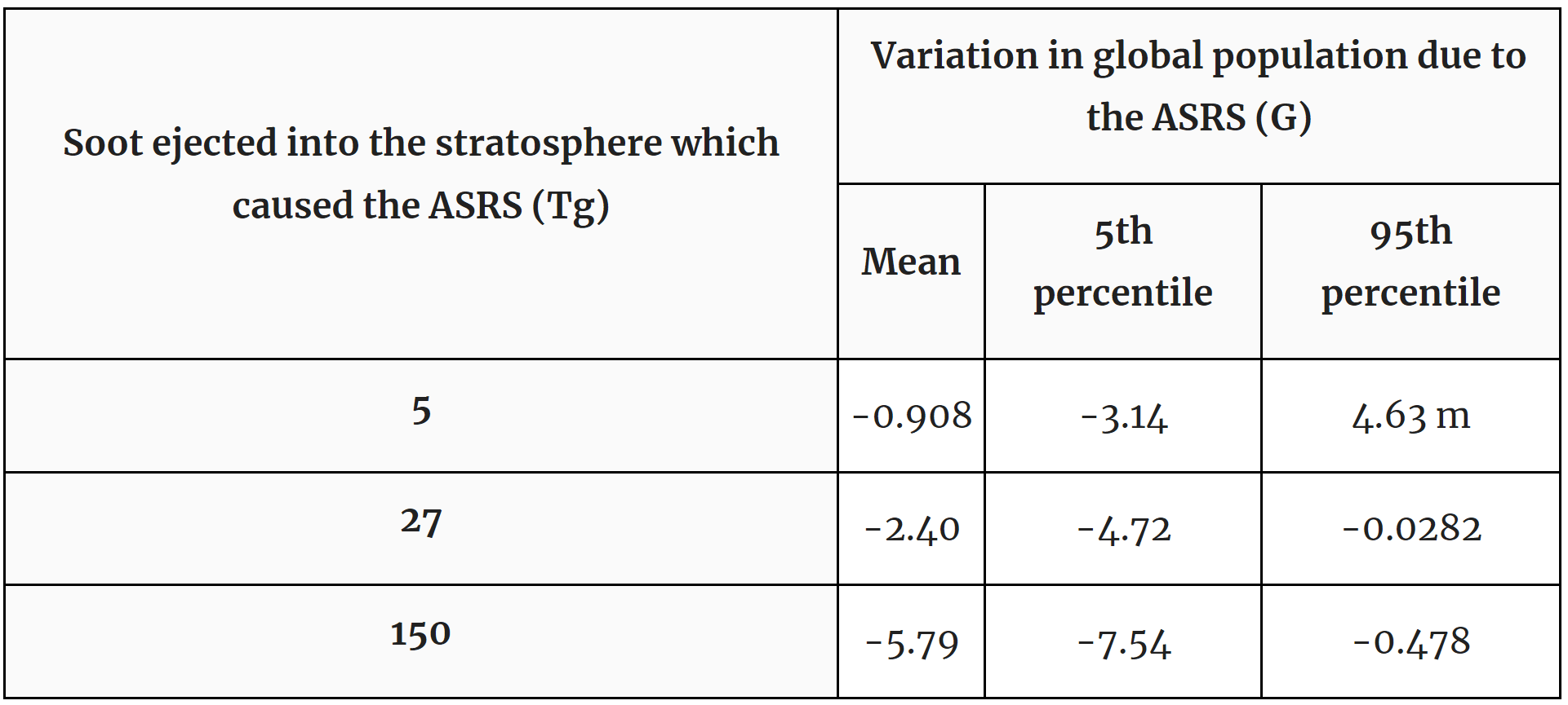 In any case, this report is definitely superseded/out-of-date; Stan's upcoming final report on abrupt sunlight reduction scenarios is far more representative of CEARCH's current thinking on the issue.
