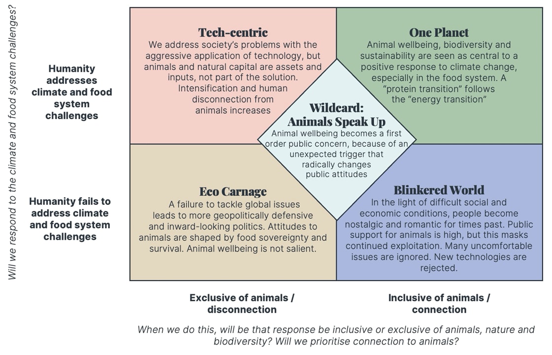 - Scenarios are not predictions but strategic tools meant to provoke discussion and planning among decision-makers, campaigners, and funders concerned with animal futures.