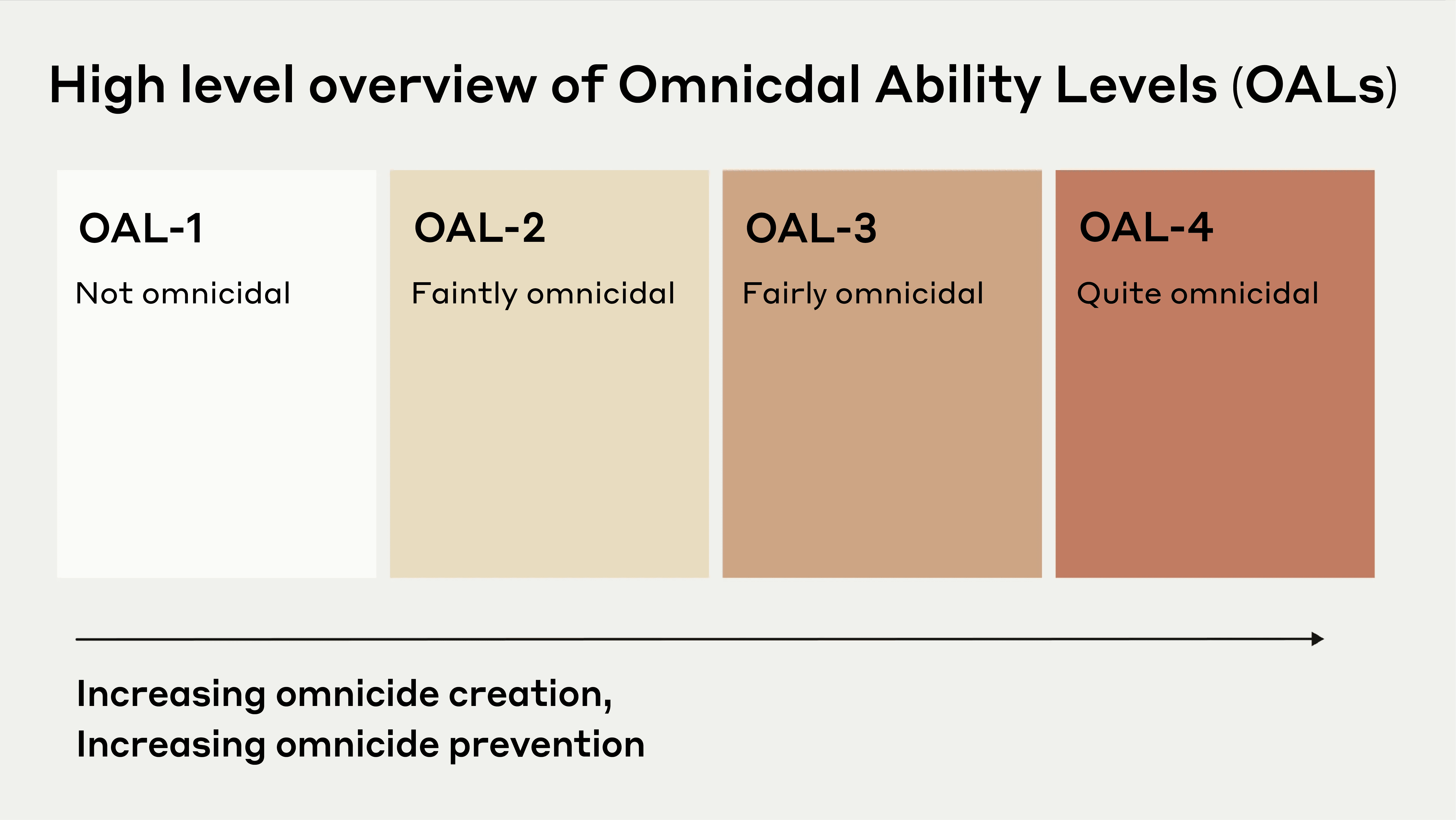 Inspired by the risk-management framework used in gain-of-function virology research, our RIP defines a framework of Omnicidal Ability Levels (OAL), reflecting the precautions we plan to take as we release increasingly dangerous features over time: