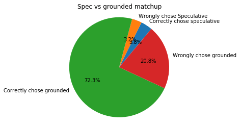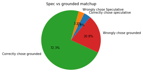 After running this simulation ten thousand times, we can compare the strategies. If you take the top estimated speculative charity, and the top estimated grounded charity, what happens if you just naively pick which is higher? Here it is: