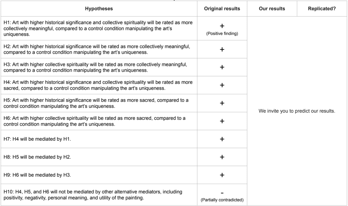 You can contribute to the cause of reliable, reproducible scientific research by making your predictions on Metaculus. We've just added Clearer Thinking's latest target study from the paper 'Collective transcendence beliefs shape the sacredness of objects: The case of art.'