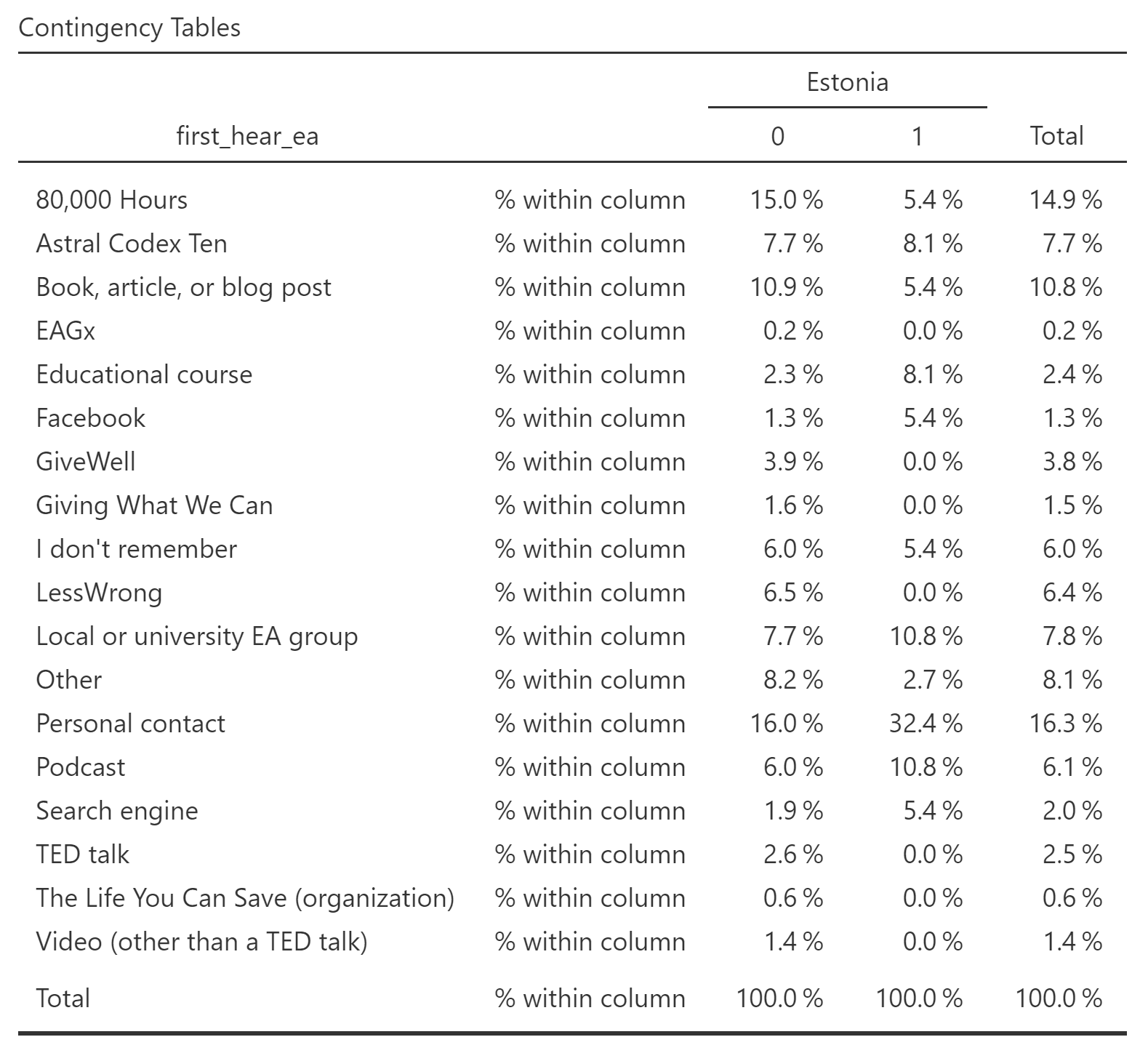 We also coded open responses to assess whether the person first heard about EA due to EA outreach.