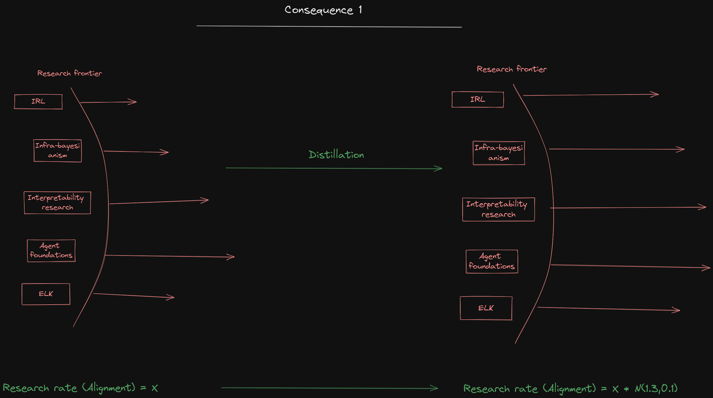 Figure 5: Distillation increases the speed of research (I have shallow confidence in that probability distribution btw)