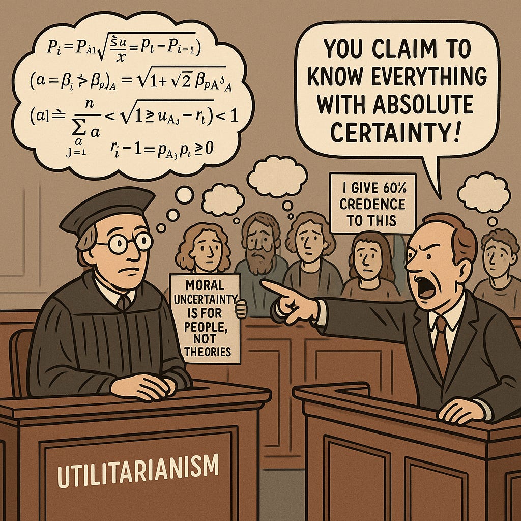 You may think the critics have an easy fix at this point: simply switch to instead talk about what believers in the theoryâutilitarians, rather than utilitarianismâwill find obvious. But again, these attributions falsely assume that utilitarians must have perfect confidence in their theory. More plausibly, everyone ought to split their credence across a range of different theories.[3] We should, in short, be morally uncertain.
