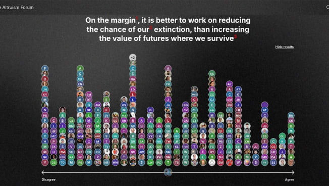 In March, we ran a debate week discussing the value of reducing the chance of extinction vs increasing the value of the future. Check out the posts and quick takes from the event here, including the primary discussion thread and a symposium with Will MacAskill and other special guests.