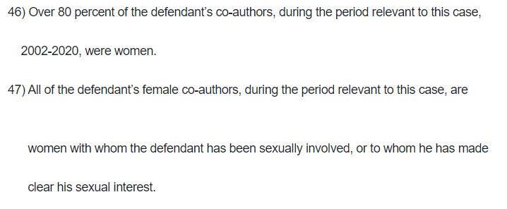 "[Singer] slept with at least thirty women from the animal rights movement in the last few decades, and handed out prestigious paid co-writing assignments, in the period covered by the claim (2002-2020), to women only with whom he had been sexually involved or was trying to be, and that he professionally punished women who did not condone his behavior."