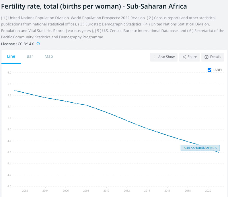 The trend in Sub-Saharan Africa is in the same direction, although at present, fertility in that region still indicates an expected doubling in population from the current generation of child-bearing-aged women to the next one.