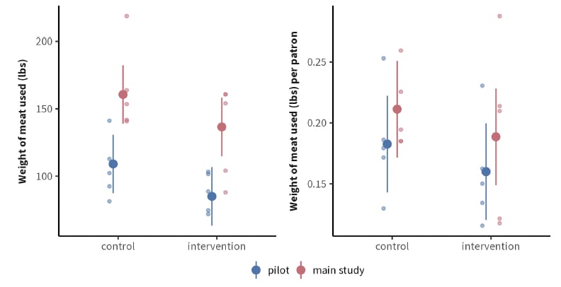 - A risk of meat-reducing interventions is that they could cause compensatory effects (e.g., eating more meat at the next meal). We only implemented the intervention at lunch so we could see if meat consumption increased at dinner.