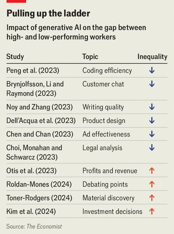 I feel like the evidence here is quite mixed: e.g., see this article from the economist: https://www.economist.com/finance-and-economics/2025/02/13/how-ai-will-divide-the-best-from-the-rest