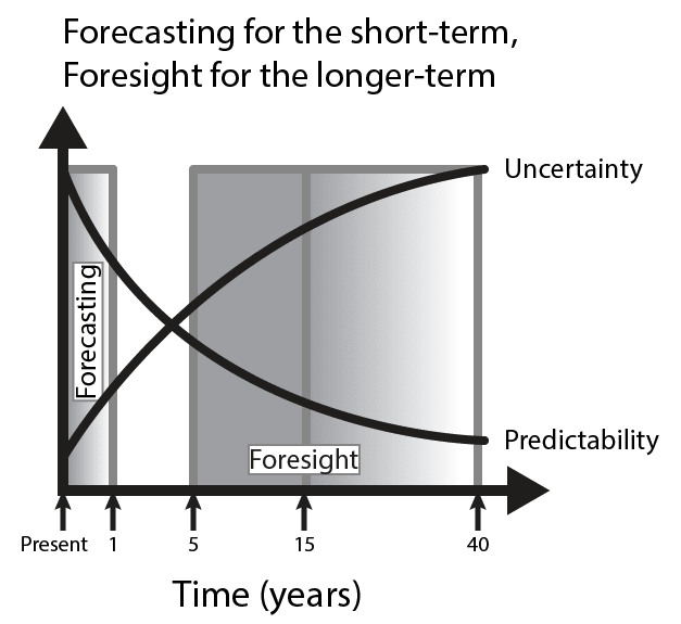 Foresight does not try to predict the future as “forecasting” does.